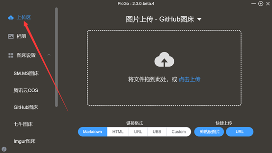 Ok,现在打开前面安装好的PicGo(双击打开),打开后的界面如下: