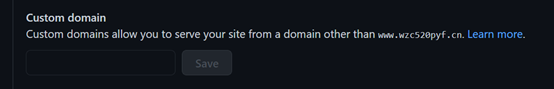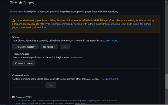 然后回到之前进入过的Setting界面, 找到GitHub Pages的设置, 将你的域名填入