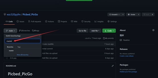 输入master新建分支master.(如果你之前没有建过这个分支,下面会提醒你创建分支,创建即可).