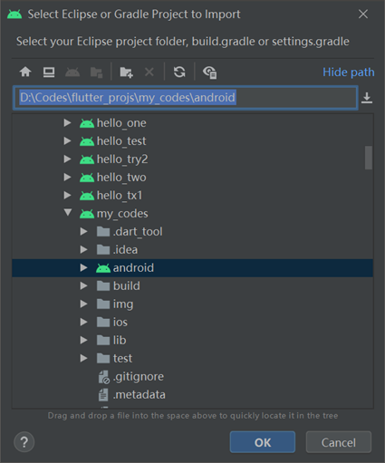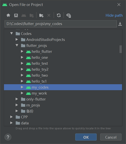 - 如果第4步你顺利地成功了,你可以 File->close project, 然后Open an existing AS project->选择刚刚的项目文件: 以我的为例: