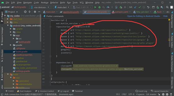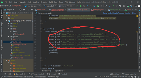 6.1 如果你的项目是刚刚建好,但是执行上述步骤出现报错,如果你的问题是由于网络问题,则可以参考: (其实添加镜像可以解决大多网络问题,不单单针对上述错误)