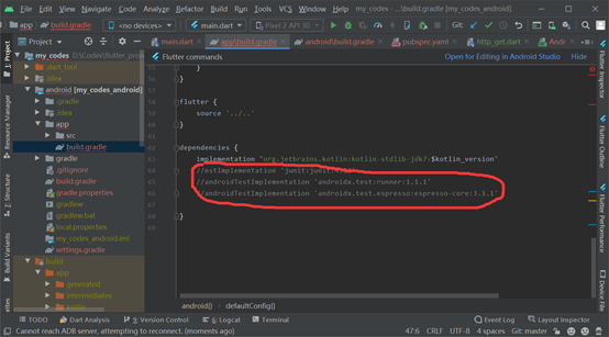 - 6.1.2 在src/build.gradle内将测试相关代码注释: