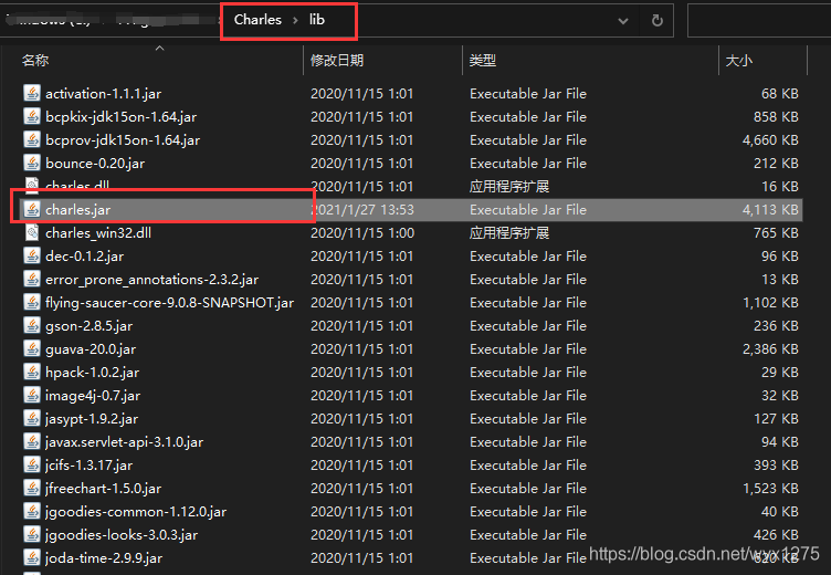 将压缩包内的 charles.jar 复制到安装目录的lib目录下