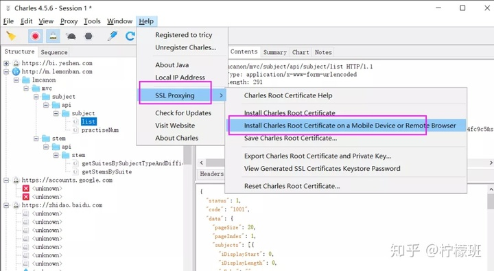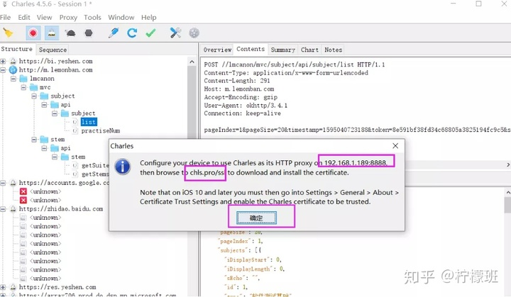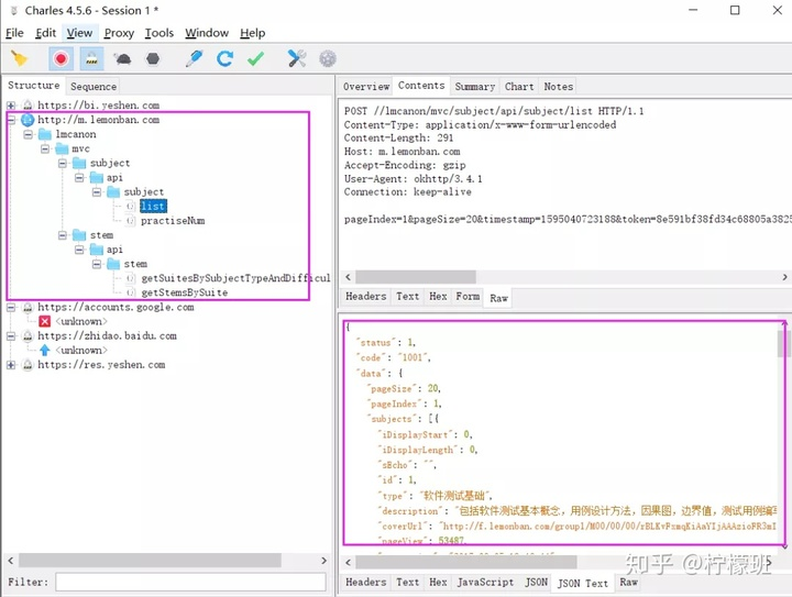 手机运行APP,比如柠檬班APP,就可以在Charles上捕获到对应的报文了。