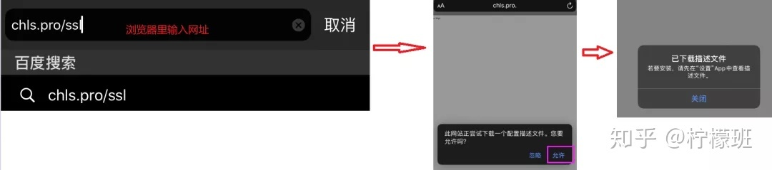 手机端浏览器里输入chls.pro/ssl网址,然后允许下载证书;并下载完成后去
